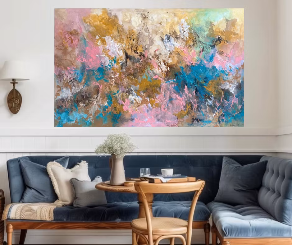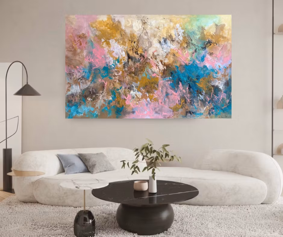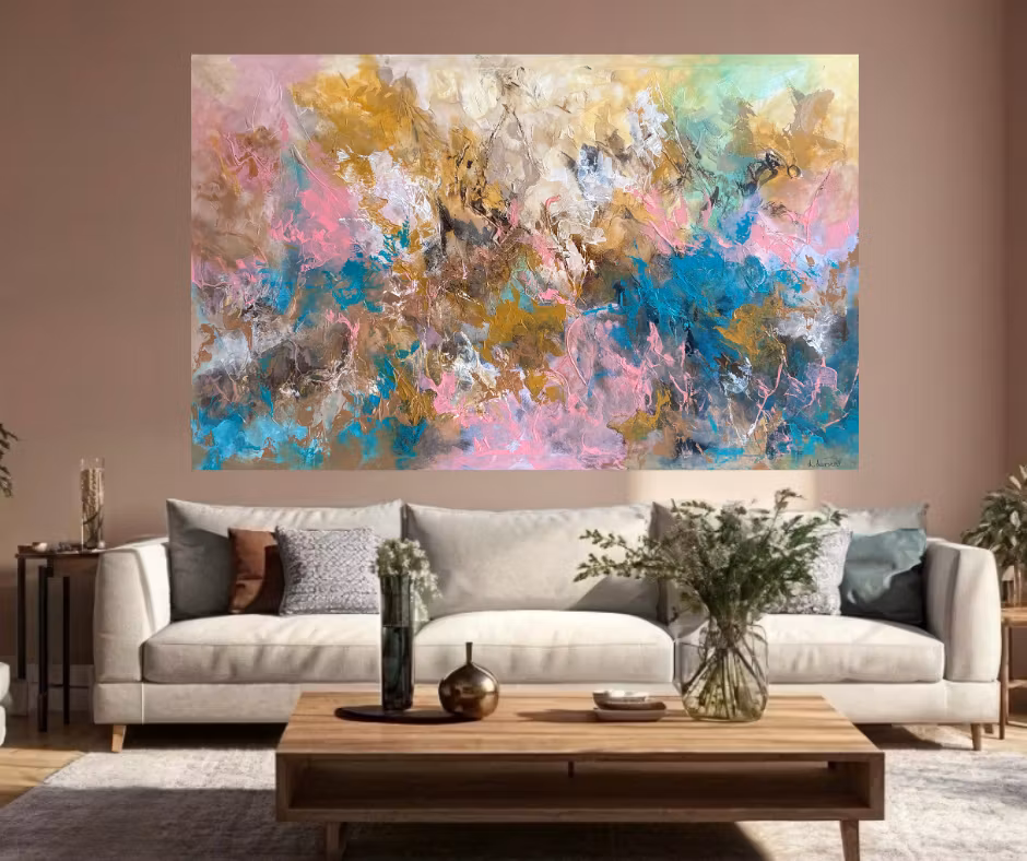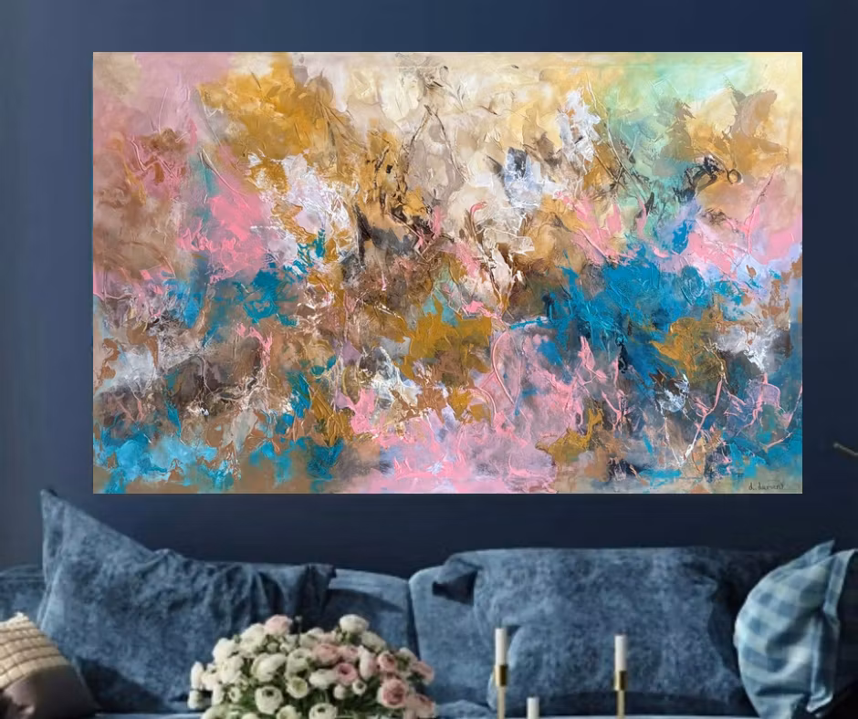 Nr. 19 Abstrakt maleri 100x150 8 500,- Dette maleriet er 100x150. Det er malt på lerret med akrylmaling. Kantene på lerretet er 5 cm og malt i sort. På lager. Legg i handlekurv Del Artikkelnummer: Informasjon Dette maleriet er 100x150. Det er malt på lerret med akrylmaling. Kantene på lerretet er 5 cm og malt i sort.